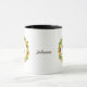 This bright and cheerful mug has your monogram in brown at the center of a bright and colorful sunflower circle frame. Colors in the sunflowers are predominantly yellow gold, green, and rich orange brown. The image and text are printed on two sides of the pot. Your name or other custom text is in matching brown between the sunflower circle images. Unique, attractive, and personalized for you! Be sure to see the matching teapot and other products in our store. *Design credit to LeCoq Design for the floral image used.