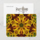 Original photograph of a sunflower, kaleidoscoped into an intensely colour-saturated design