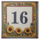 "custom house number plate", "personalised house no plaque", "personal customised text sign", "sunflower casa ceramic tile", "mediterranean floral sunflowers flower", "vintage green gold yellow flowers", "traditional summer vacation nature", "postage mailing mail post address", "european holiday home signage", "decorative rustic country villa"