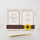 The text on this sunflower damask wedding program is fully customisable. The program itself is intended to be folded down the middle when you receive it. You can change the text using the personalise option. For more extensive changes to the program, including changing the background colour, font, font colour, font size, or text placement, choose the "customise it" option. This is a great wedding program for a summer or fall wedding with a sunflower theme. The colours are bright yellow and chocolate browns. Simple, pretty, and cheerful. This program is currently customised for a wedding, but would also work great for an anniversary party program (renewal of vows perhaps) or a church bulletin. All you need to do is change the wording. NOTE: This invitation is a flat design without any 3D embellishments.