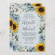 Sunflower Dusty Blue Country Rustic Roses Wedding Invitation