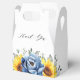 Elegant and modern floral midsummer bridal shower favour box features a bouquet of watercolor sunflower hydrangea & peonies in shades of yellow , slate, dusty blue with lush green botanical leaves and eucalyptus. Please find more matching designs and variations from my "blissweddingpaperie" store. And feel free to contact me for further customisation or matching items.