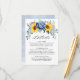 Elegant and modern floral midsummer wedding details card features a bouquet of watercolor sunflower hydrangea & peonies in shades of yellow , slate, dusty blue with lush green botanical leaves and eucalyptus. Please find more matching designs and variations from my "blissweddingpaperie" store. And feel free to contact me for further customisation or matching items.