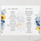 Elegant and modern floral midsummer wedding program features a bouquet of watercolor sunflower hydrangea & peonies in shades of yellow , slate, dusty blue with lush green botanical leaves and eucalyptus. Please find more matching designs and variations from my "blissweddingpaperie" store. And feel free to contact me for further customisation or matching items.