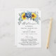 Elegant and modern floral midsummer wedding program card features a bouquet of watercolor sunflower hydrangea & peonies in shades of yellow , slate, dusty blue with lush green botanical leaves and eucalyptus. Please find more matching designs and variations from my "blissweddingpaperie" store. And feel free to contact me for further customisation or matching items.