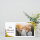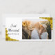 Customise the pretty Sunflower Edge Just Married Photo Card with your own personal wedding picture and names of the newlyweds. This elegant custom floral just married photocard features yellow sunflowers adorning the corners with a white background.