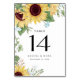 Sunflower Elegant Rustic Wedding Table Number