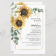 Sunflower Eucalyptus Floral Script Geometric 50th Birthday invitation featuring a modern boho chic flowers and greenery with geometric frame.
