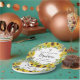 Beautiful, cheerful sunflowers, eucalyptus, and palm leaves displayed create a floral wreath design for your baptism plates. A rustic wooden cross at the top adds to the blessed occasion. The name, "Baptism", date, and location are also displayed on the plate. This paper plate is perfect for any late summer or autumn baptism.