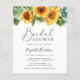 Rustic budget-friendly bridal shower invitation featuring a watercolor bouquet of sunflower florals and eucalyptus greenery and elegant calligraphy scripts.