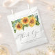 Rustic bridal shower party favour bags featuring watercolor bouquets of sunflower florals and eucalyptus greenery, "Thank You" in a chic calligraphy script and the bride's name in elegant typography.