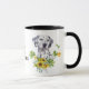 "LOVE MY DALMATIAN" declares this mug for the proud Dal owner. Each side of the mug has a beautiful watercolor portrait of a Dalmatian dog framed by sunflower blossoms and green leaves. Mixed in are sprigs of blue green eucalyptus. Between the two images is the text, which may be easily customised, or even removed, by you.