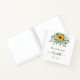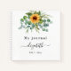 A white background. Decorated with sunflowers, eucalyptus greenery. Add a name, text The name is written with a modern hand lettered style script with swashes.