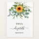 A white background. Decorated with sunflowers, eucalyptus greenery. Add a name, text. The name is written with a modern hand lettered style script with swashes.