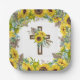 Sunflower Eucalyptus Palm Boho Square Baptism Paper Plate