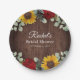 Sunflower Eucalyptus Red Roses Wood Bridal Shower Paper Plate