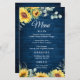 Sunflower Eucalyptus Rustic Blue Wood Wedding Menu