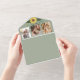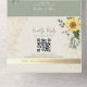 Bright and rustic, this sunflower and eucalyptus all-in-one wedding invitation brings joyful warmth to your special day. Featuring vibrant yellow sunflowers, gold branches, and soft green accents on a sage background, this design includes space for 3 personal photos and a QR code for RSVP. No envelopes needed—just personalise, seal, and send for a charmingly efficient invitation experience.
