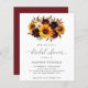 Sunflower budget Bridal Shower Invitation featuring a rustic bouquet with watercolor painted sunflowers, red roses, purple flowers and greenery. An elegant floral design perfect for a boho themed Bridal Shower in the fall / autumn. These cheap bridal shower invitations are printed on sheets of paper for a budget friendly option.