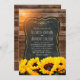 Sunflower Fall Wedding Invitations Rustic Chalkboard - vintage wooden chalkboard invitations. Creative country themed wedding cards. Best for traditional or unusual summer country style weddings. Just add your wedding details. You can also order a small number of samples. Designed by http://superdazzle.com
