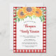 Invite your family to their gathering with this floral family reunion invitation, decorated with watercolor sunflowers and foliage on a red gingham background.