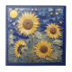 Sunflower Faux Mosaic Yellow Sunflowers Navy Blue Tile