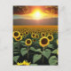 The setting sun casts a warm hue over the landscape, creating a beautiful scene of oranges and yellow. As far as the eye can see, the field is filled with tall, bright yellow sunflowers that sway in the gentle breeze. The scene is peaceful and calming, inviting visitors to take a few moments to admire its beauty. A sunflower field at sunset is an incredible experience that captivates both young and old alike.