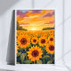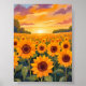 Sunflower Field Sunset Landscape Painting Poster