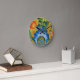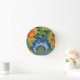 The clock did not take as long to arrive as I thought it might and was extremely well packaged. I didn't do the measurements so I didn't realize it is a little smaller than the average clock but that does not matter (just make sure you check if that's important to you).It is really nifty! It seems very solid and well made not flimsy at all. It has been going well and has kept good time in its few weeks on my wall. Nice product. Gets noticed too! Nicer in real life than the picture but true to the picture