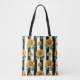 Sunflower Floral Black White Stripes Tote Bag