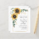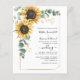 Create a modern Sunflower Floral Budget Wedding invitation card with this cute template featuring beautiful rustic floral bouquet, geometric gold effect frame, with modern simple typography.