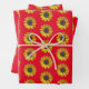 Sunflower Floral Pattern On Red Wrapping Paper Sheet