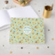 Beautiful one-of-a-kind hand-painted sunflower floral print vacation home, vacation rental, or bed & breakfast guest book. Easy to customise with your information. Original design and artwork by Studio Posies. Shop this pattern on a variety of merchandise including home decor, face masks, accessories, stationery and greeting cards, and much more!