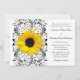 The text and background colour on this sunflower floral wedding invitation is fully customisable. To change the text, use the personalise option. For more extensive changes, such as changes to the font, font colour, font size, text layout or background colour, use the customise option. The colours on this invitation are black, white, and yellow and would be perfect for a summer or fall wedding. This invitation is currently customised for a wedding, but could work well for a variety of special occasions. All you need to do is change the text. This invitation is currently setup to print on the standard white paper type, but would look nice on the linen or metallic paper types. To change the paper type, click on the invitation options tab. Our store has a variety of sunflower wedding stationery products.