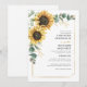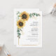 Create a modern Sunflower Floral Wedding invitation card with this cute template featuring beautiful rustic floral bouquet, geometric gold effect frame, with modern simple typography.