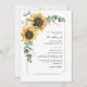 Create a modern Sunflower Floral Wedding invitation card with this cute template featuring beautiful rustic floral bouquet, geometric gold effect frame, with modern simple typography.