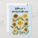 Brighten someone's day with our Editable Quote Greeting Postcard adorned with a charming sunflower watercolor illustration against a sky blue backdrop. Featuring the quote "Wishing you a blooming beautiful day!" This customisable card lets you add your personal touch. Spread the joy of summer with this vintage-inspired floral art piece. Perfect for sending warm wishes and adding a touch of artistry to any occasion!