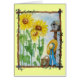 Original watercolor painting by Sandra Gale, featuring a group of sunflowers and a gardener's bag, hat and shovel. Great design for gardeners of all types and a perfect image of summer!