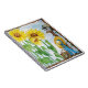 Original watercolor painting by Sandra Gale, featuring a group of sunflowers and a gardener's bag, hat and shovel. Great design for gardeners of all types and a perfect image of summer!