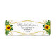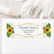 Design features sunflowers and botanical leaves over a printed gold colored geometric frame.