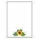 Design features sunflowers and botanical leaves over a printed gold coloured geometric frame.