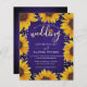 Sunflower Gold Dots Blue Wood Wedding Invitation
