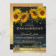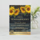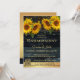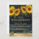 A festive design engagement party invitation featuring sunflowers and light sparkles on a rustic wood and metal dark green background with golden lining. Beautiful for a fall or autumn celebration. The "Engagement" text is a stylised image and you can delete it if you prefer. You can also replace the back with your custom photo if you like.