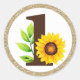 Sunflower & Gold ONE Baby Girl 1st Birthday Party Classic Round Sticker