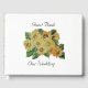 Elegante sunflower bouquet in shades of yellow with green leaves and golden twigs. Design perfect for a floral Wedding.