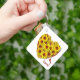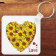 Display a natural vibe with this abundance of amber sunflowers heart keychain. This design has a warm feel due to its amber and orange palette. Express yourself by experimenting with different background colors and added text.