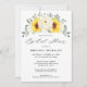 Elegant modern floral midsummer bridal shower invitation features a bouquet of watercolor sunflower hydrangea & peonies in shades of rich yellow, ivory, with lush green botanical leaves and eucalyptus. Please find more matching designs and variations from my "blissweddingpaperie" store. And feel free to contact me for further customisation or matching items.
