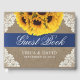 Sunflower Lace & Burlap Blue Ribbon Rustic Wedding Guest Book