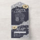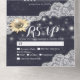 Sunflower Lace String Light Navy Blue Wedding RSVP All In One Invitation