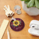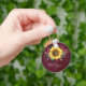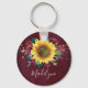 This key chain features a modern watercolor floral design with a sunflower, burgundy roses and greenery foliage. Personalise it with a name.